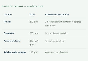 GUIDE DE DOSAGE — ALGÉLYS 5 KG